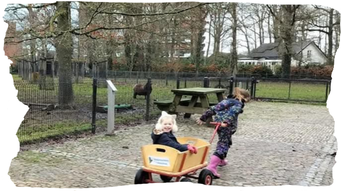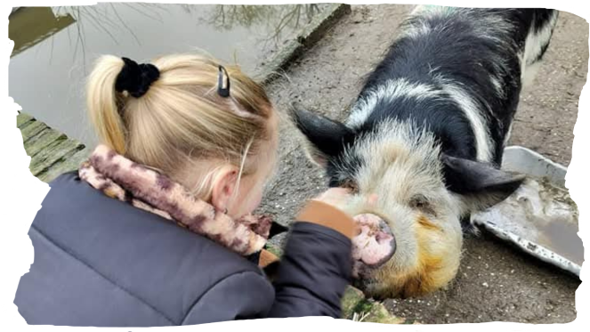 Bij Kinderboerderij Erve Weusthag, vlak naast onze locatie, beleven de kinderen elke keer weer iets nieuws. Ze kunnen geiten tegenkomen die vrij rondlopen, de 2 hangbuikzwijnen aaien of de pauwen bewonderen die trots rondwandelen. Het is een fantastische plek om in contact te komen met allerlei dieren, zoals alpaca's, een ezel, een pony en verschillende vogels.