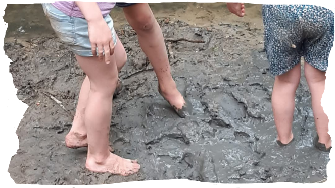Op Modderdag gaat het helemaal los – we zoeken de modder op of maken het zelf, springen erin en spelen er urenlang mee! Het is een feestje van vieze voeten, vuile handen en eindeloos veel plezier!