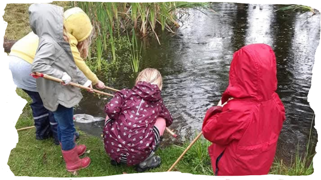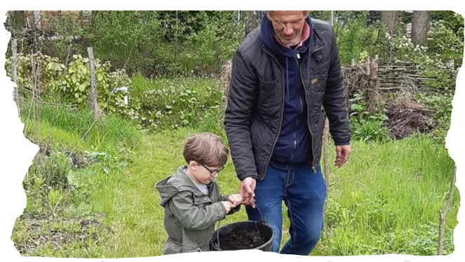 We rennen door het gras, rollen van de heuvels en gaan met onze blote voeten door de beek, terwijl we de warme zonnestralen op onze gezichten voelen. In onze moestuin zaaien we nieuwe plantjes en zien we ze elke week een stukje groeien. Soms vinden we kikkerdril en kijken we uit naar het moment dat de kikkervisjes uitkomen.