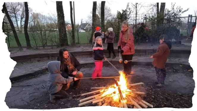 Onze locatie biedt een plek waar kinderen spelenderwijs leren, al doende ontdekken en vooral genieten – van het vuur, de plassen, de natuur en alles wat we samen maken!