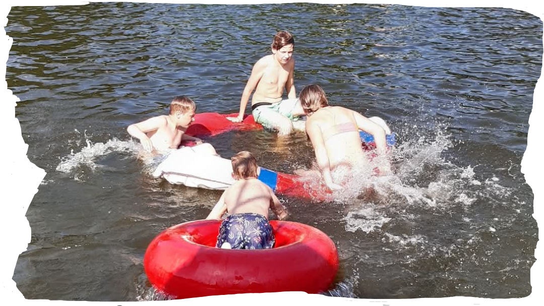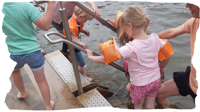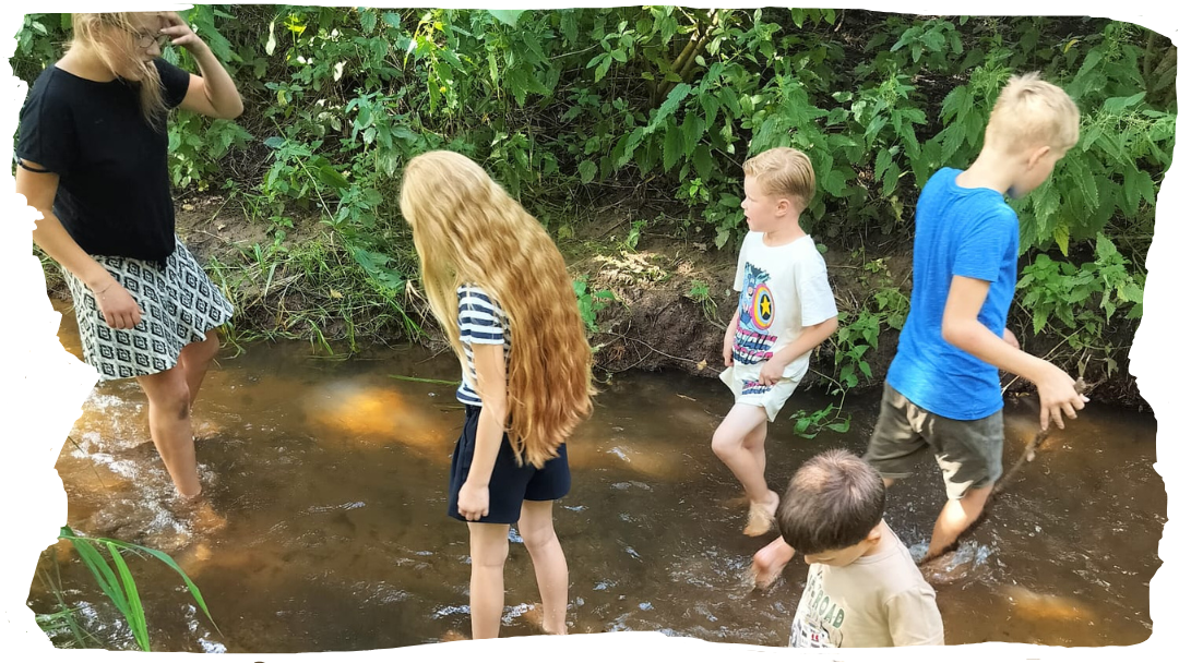 Ook buiten het water is er van alles te beleven. We picknicken in het gras, bouwen schaduwrijke hutten in het bos en ontdekken de mooiste bloemen en insecten. Lange, zonnige dagen geven ons alle tijd om samen plezier te maken en van de natuur te genieten.