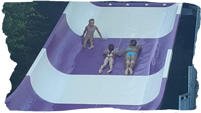 En dan zijn er nog de glijbanen! Niets is leuker dan met z'n allen naar beneden glijden en met een plons in het water te belanden.