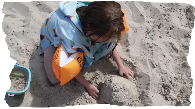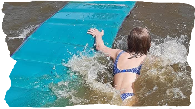 Voor de jongere kinderen is er een afgesloten ondiep gedeelte, waar ze veilig kunnen spetteren en spelen. Het stukje zandstrand is perfect voor het bouwen van zandkastelen en het graven van kuilen. In het water liggen verschillende speelattributen, zoals een loopmat en grote banden, die zorgen voor eindeloos speelplezier.